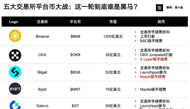 我们就来具体看下这场交易所平台币大战的前5大玩家,从而对整体战局有一个全面的认知。