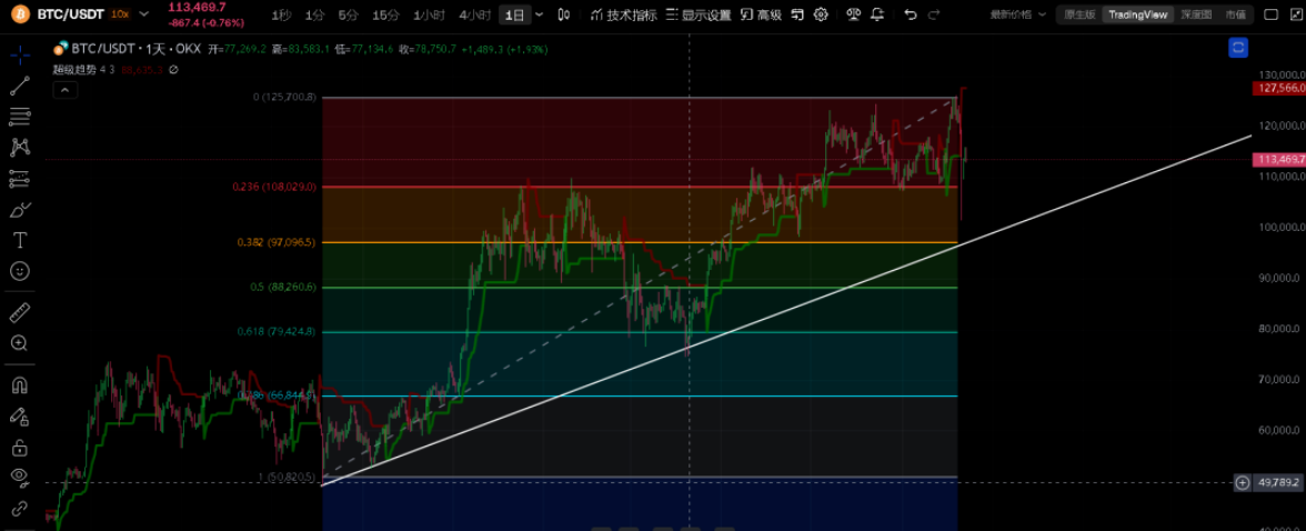 上图为4H趋势图,下图为15分钟趋势图。指标(1)采用斐波那契数列,每一级为支撑或回调位。指标(2)超级趋势,右侧指标,走势图下方,绿色代表上涨趋势,红色代表下跌趋势。指标(3)自己画线通道,判断是否走出趋势。