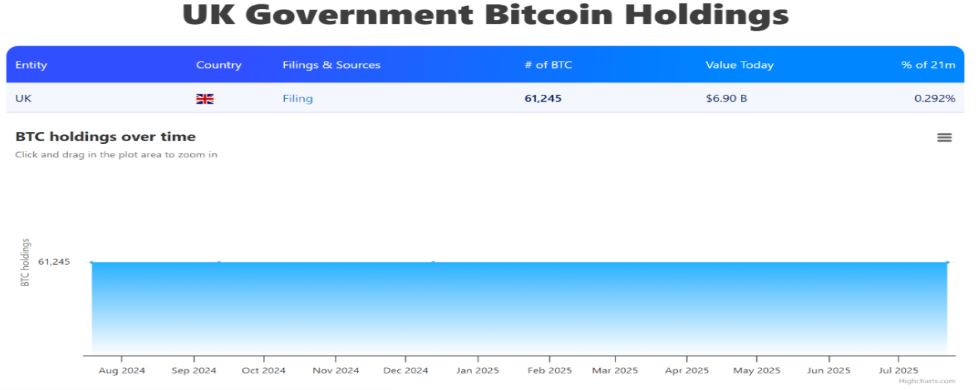 链上分析师数据显示,美国政府掌控着大量查扣的比特币;萨尔瓦多也在其资产负债表中持有数千枚比特币。英国目前留存的61245枚比特币,使其跻身全球比特币持有量前列(按可统计规模计算)。