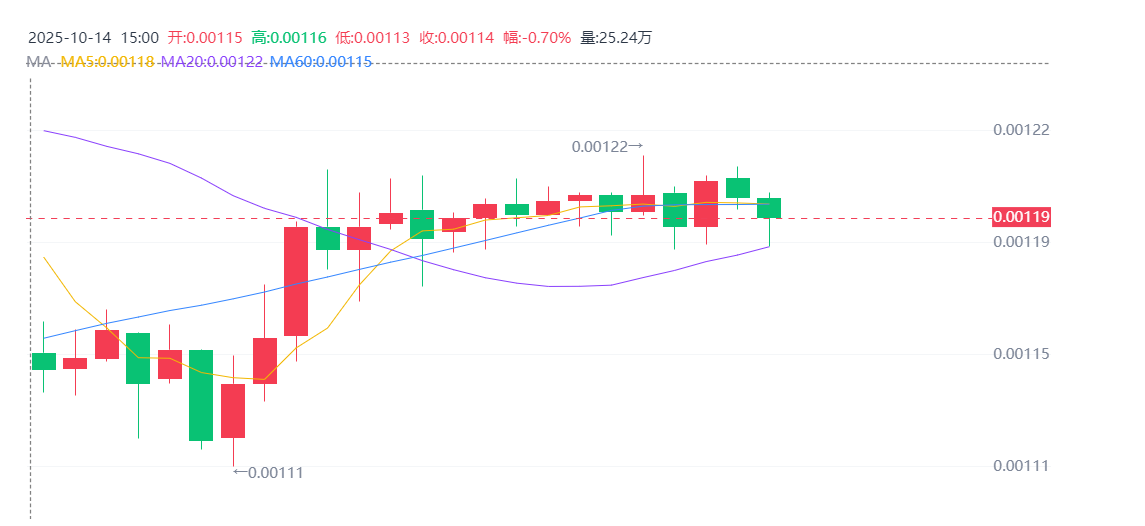 最新成交价:约0.001191美元至0.001201美元(不同交易所略有差异)。