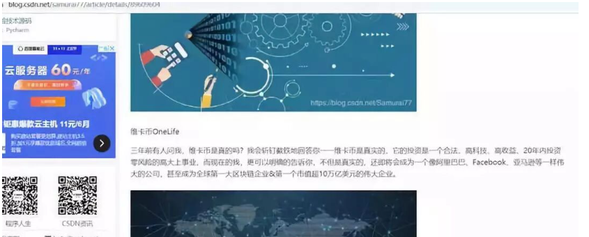 除此之外,在技术社区CSDN的网站上,也有一些用户不断地发文章来宣传维卡币的“真实性”。
