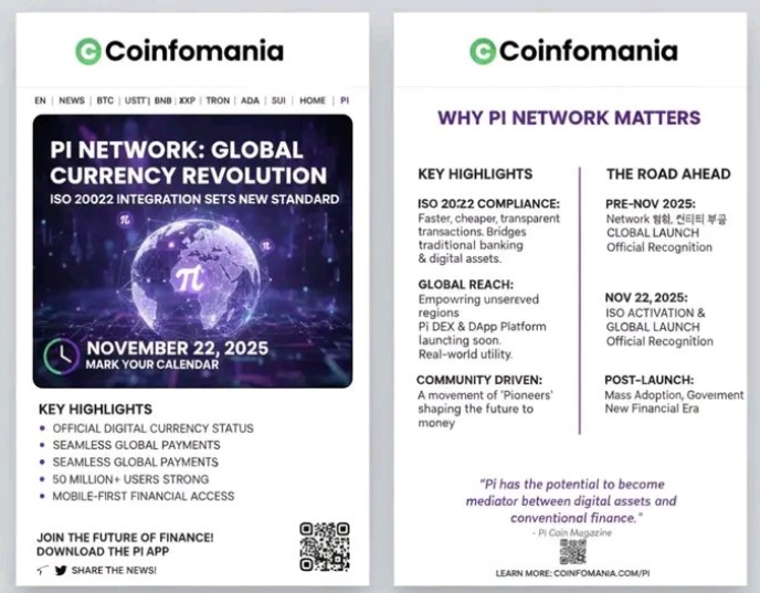Mark your calendar.The countdown to November 22, 2025 has commenced. With ISO 20022 compliance looming, Pi is set to emerge as a recognized global currency, providing seamless global payments, integration with traditional banking, and financial access to over 50 million users.