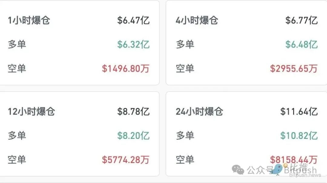 Coinglass的数据显示,最近24小时内,全球共 302,364 人被爆仓,爆仓总金额为 $11.64 亿美金,分别为10.82亿美元的多头头寸和约8158万美元的空头头寸。其中,比特币占2.98亿美元,以太坊2.73亿美元,SOL 1.44亿美元,其他加密货币占1.25美元。