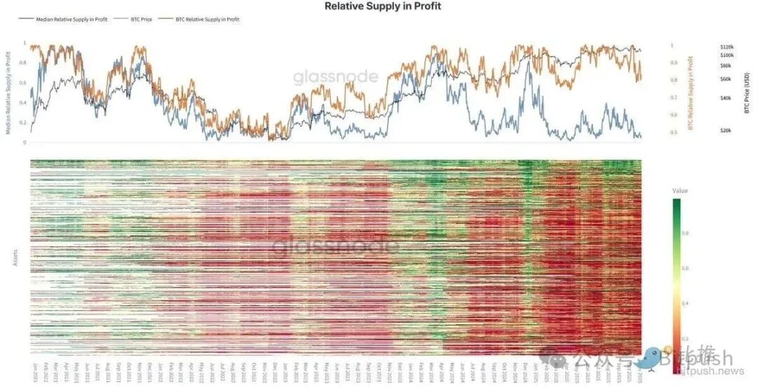 山寨币市场正经历严峻考验。Glassnode分析师在X平台指出,多数山寨币相对于比特币的表现持续疲软,其供应量和利润水平"仅在关税战及2022年熊市期间才出现过如此低迷的状况"。分析师强调,若投资者采取被动持有山寨币的策略,"极有可能已跑输比特币基准表现"。