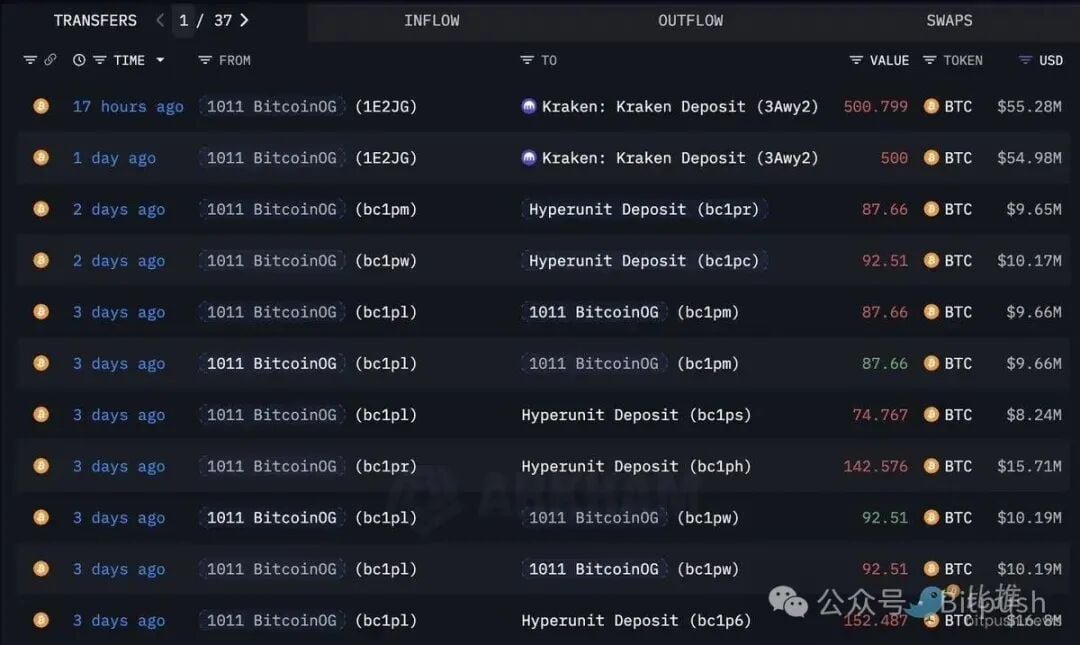 具体来看,“1011short”关联钱包于11月2日向Kraken单笔转入500枚比特币,对应市值约5500万美元;同时亦分批向Hyperliquid存入多笔规模相对较小的比特币,单笔数量介于70至150枚之间。