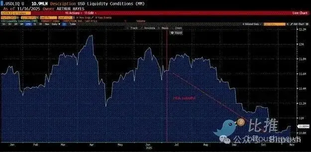 我最初对停摆后的风险资产持乐观态度。然而,当我深入研究数据时,我注意到自 7 月以来,根据我的指数,大约有 1 万亿美元的美元流动性蒸发了。增加 1500 亿美元是很棒,但接下来呢?