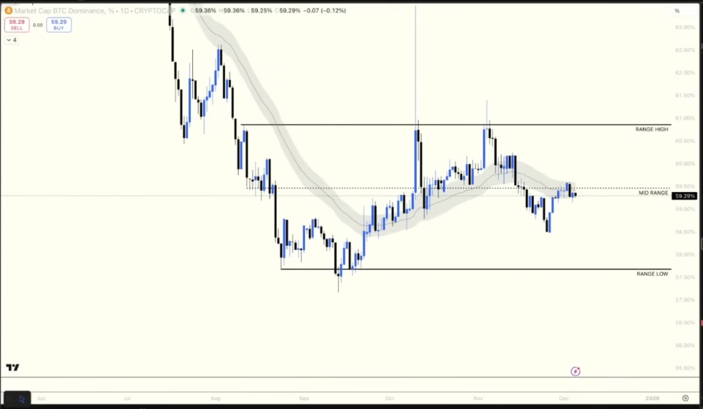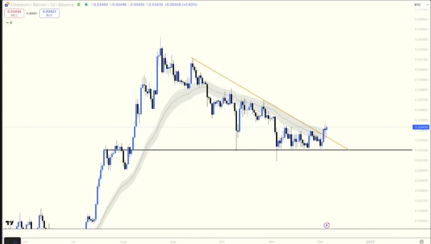 最近我们看到 ETH/BTC 汇率在很长一段时间以来首次出现向上突破。这一点非常有趣。更值得注意的是,这种现象发生在比特币主导地位(Dominance)疲软的情况下。这是我第一次看到,即使市场表现疲软,比特币的主导地位也没有上升。你怎么看这两张图表结合在一起的意义?我觉得这可能意味着,即使比特币价格持平或小幅上涨,山寨币也有可能在这一轮市场中实现超额表现。你怎么看?