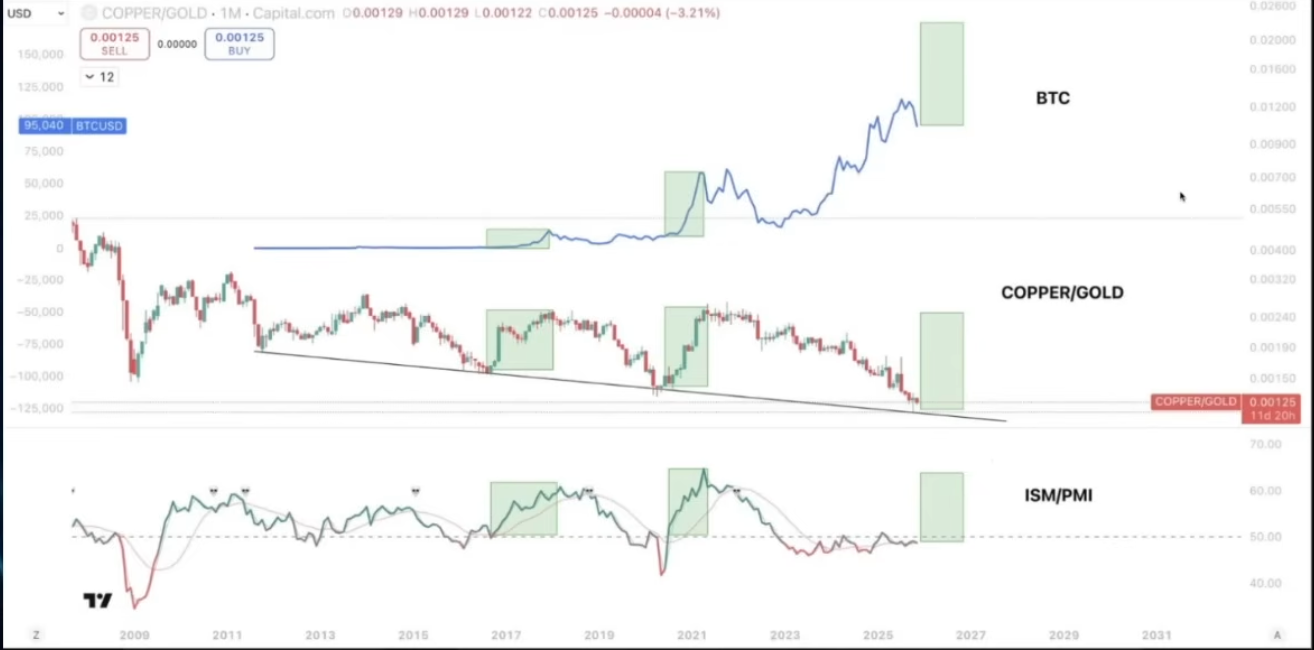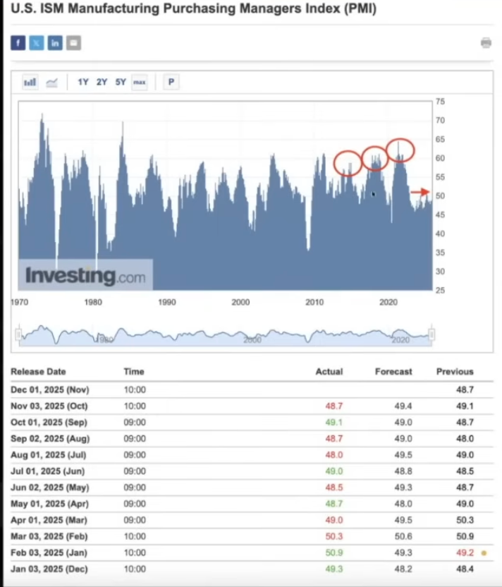 Raoul Pal(Real Vision CEO)的理论核心在于,他认为 ISM 指数将在 2026 年上半年回升,同时流动性条件将更加宽松,这将成为比特币下一轮上涨的关键触发因素。你是否关注这个指标?
